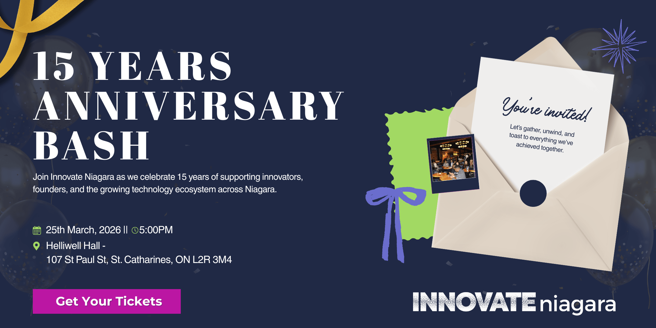 Innovate Niagara is proud to celebrate 15 years of supporting entrepreneurs, startups, and technology-driven companies across Niagara. This milestone is about more than a number. It represents the founders we have supported, the partnerships we have built, and the innovation community we continue to strengthen together.Join us for our 15th Anniversary Bash at Helliwell Restaurant, one of St. Catharines’ newest and most exciting venues. As a strong partner to the region, Helliwell provides the perfect space to bring our community together for an evening of connection, reflection, and celebration.